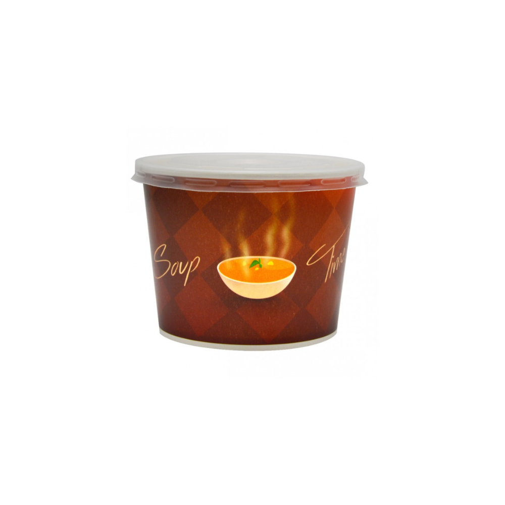 Bol supă cu capac – Set 100 Boluri Supă din Carton 520 ml cu Capac Inclus – Ideal pentru Catering și Take-Away