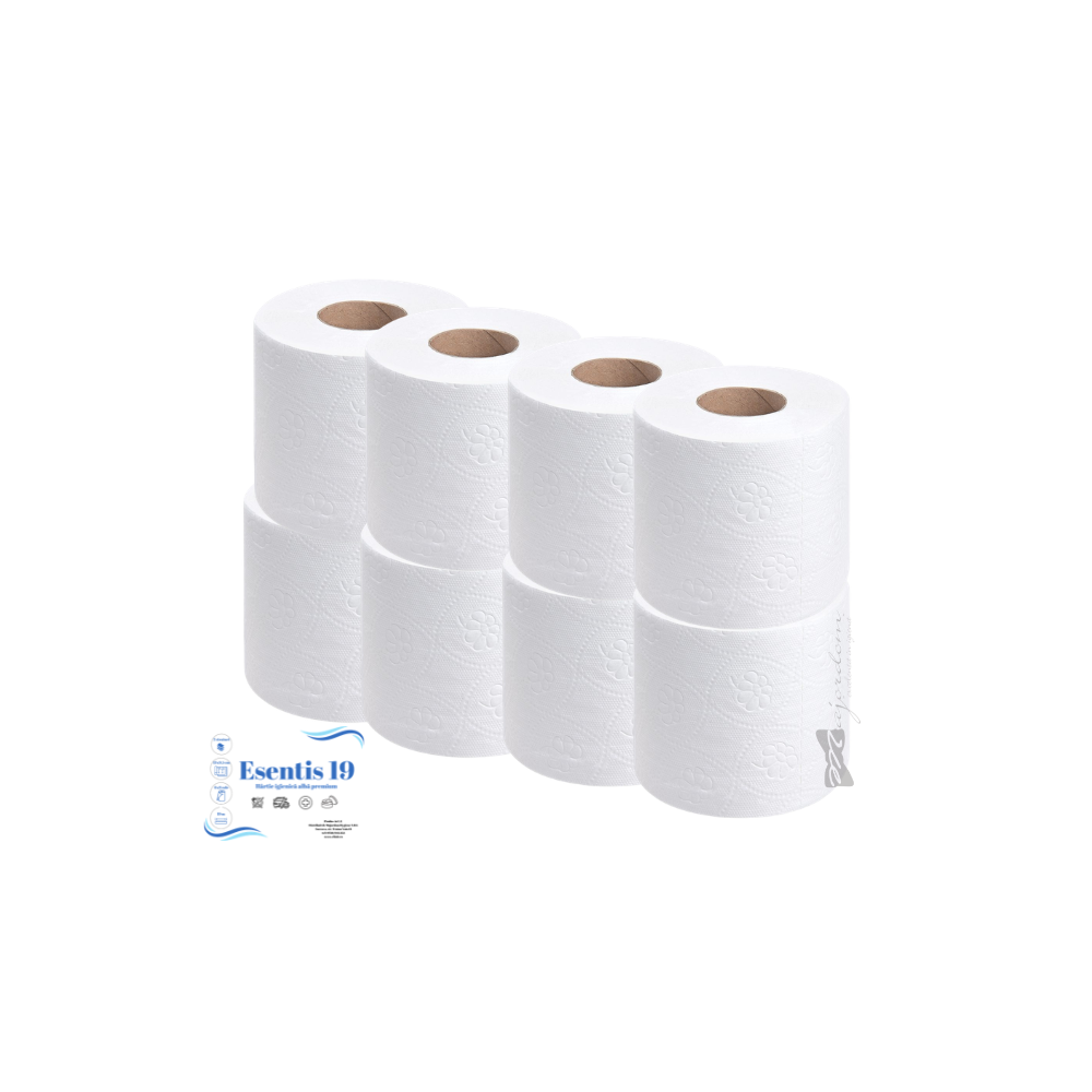 Hârtia igienică Esentis 19m este fabricată din 100% celuloză pură, ceea ce o face moale și delicată pe piele. Este disponibilă în 3 straturi, ceea ce o face o alegere bună pentru persoanele cu piele sensibilă.
